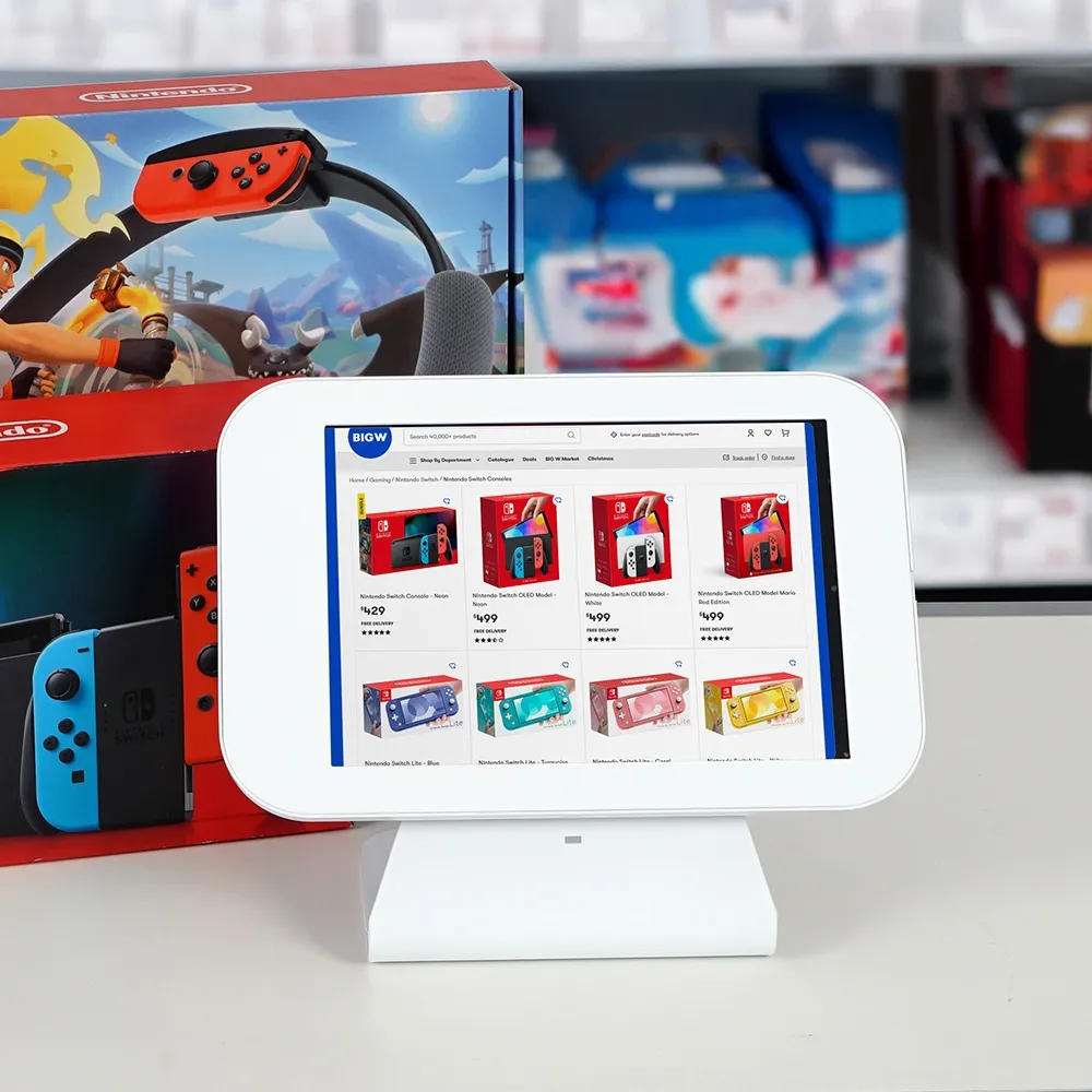 - Display devices in landscape format on walls and portrait or landscape on tables