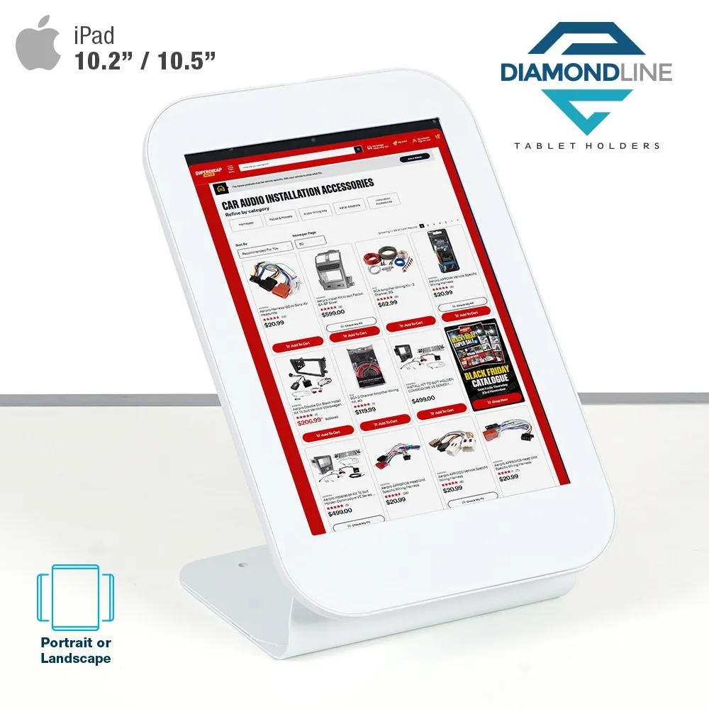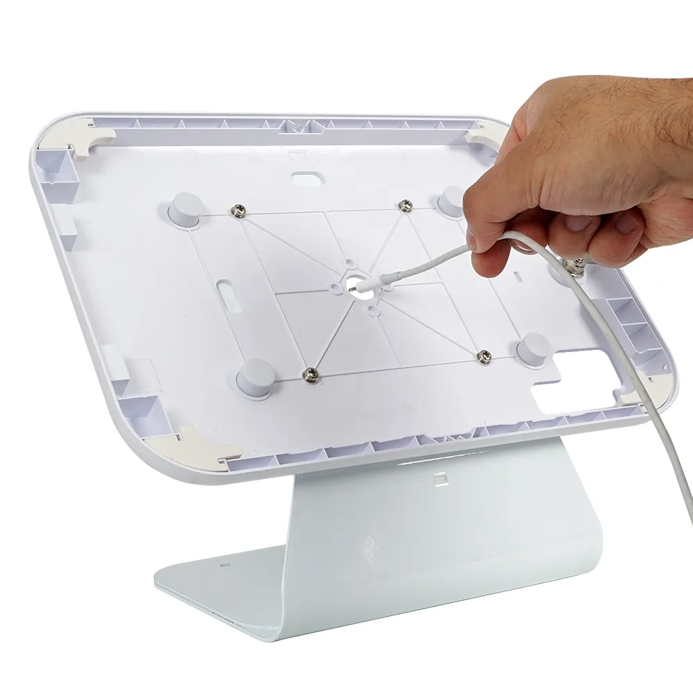 The lockable device display, iPad tablet mount is a versatile unit that can be installed on both walls and countertops. When placed on a wall the devices can only be in landscape orientation however on countertops they can be put in portrait or landscape format. The holder is designed to hold Apple iPad 10.2”, which includes iPad 2019 (7th generation), 2020 (8th generation), and 2021 (9th generation). There's a Kensington lock slot on the mount for an additional security measure using a cable lock, sold separately. This display is perfect for using in retail stores, museums, restaurants, exhibition halls, casinos, doctor offices, and more.