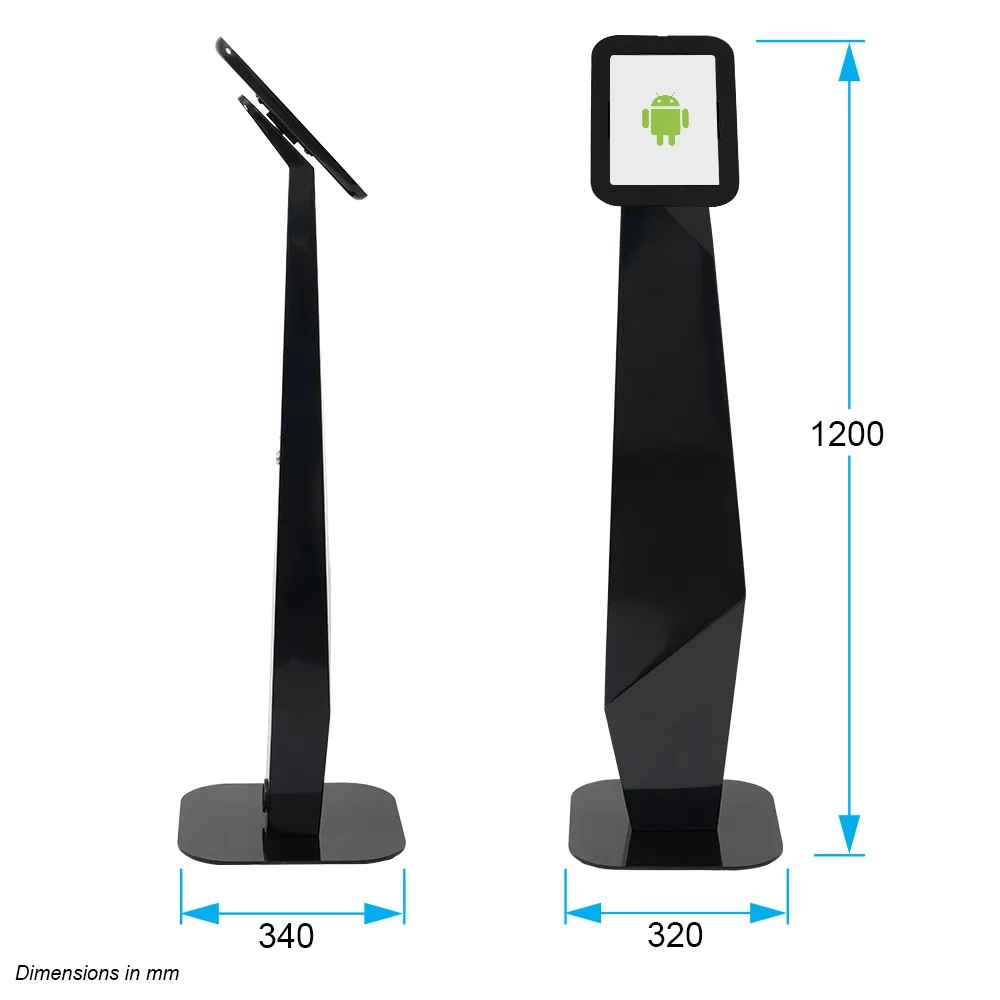- Floor mount tablet holder is 1200mm tall with unique geometric design