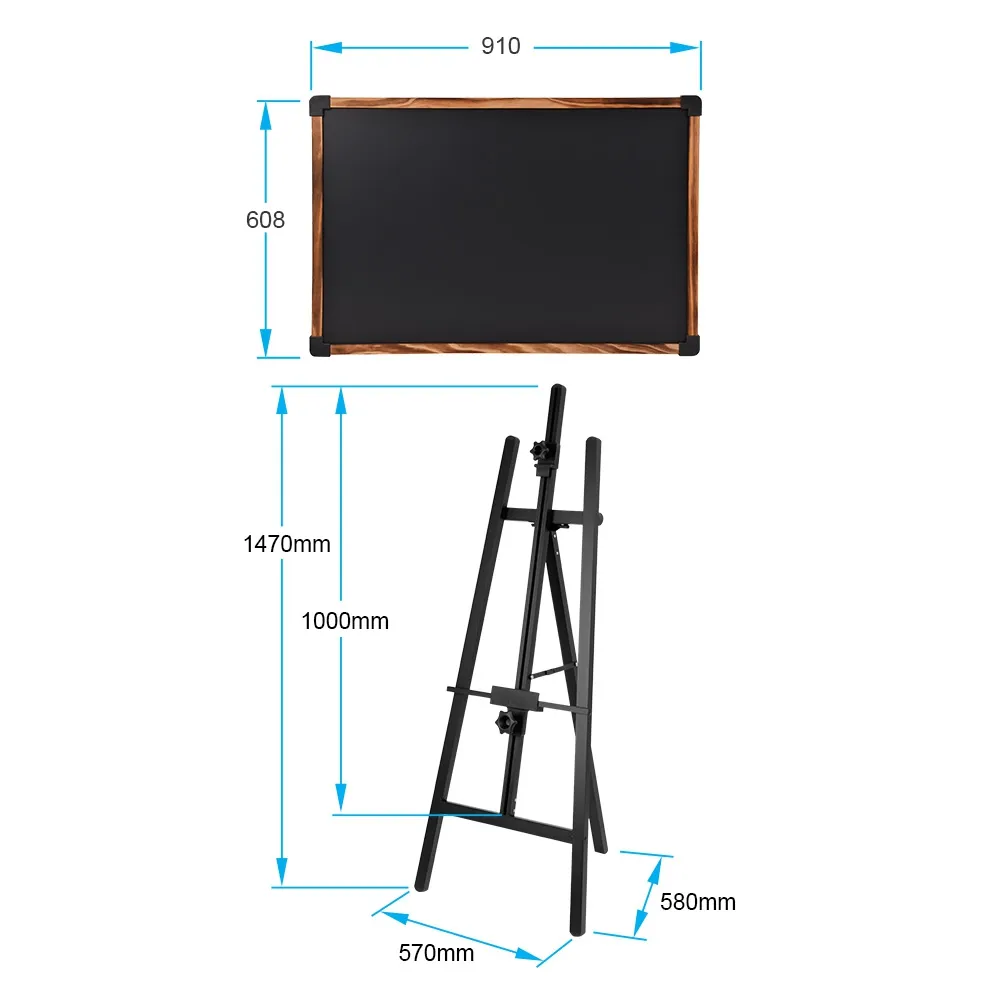 - Easel is 1470mm tall and has adjustable leg to make angling display simple