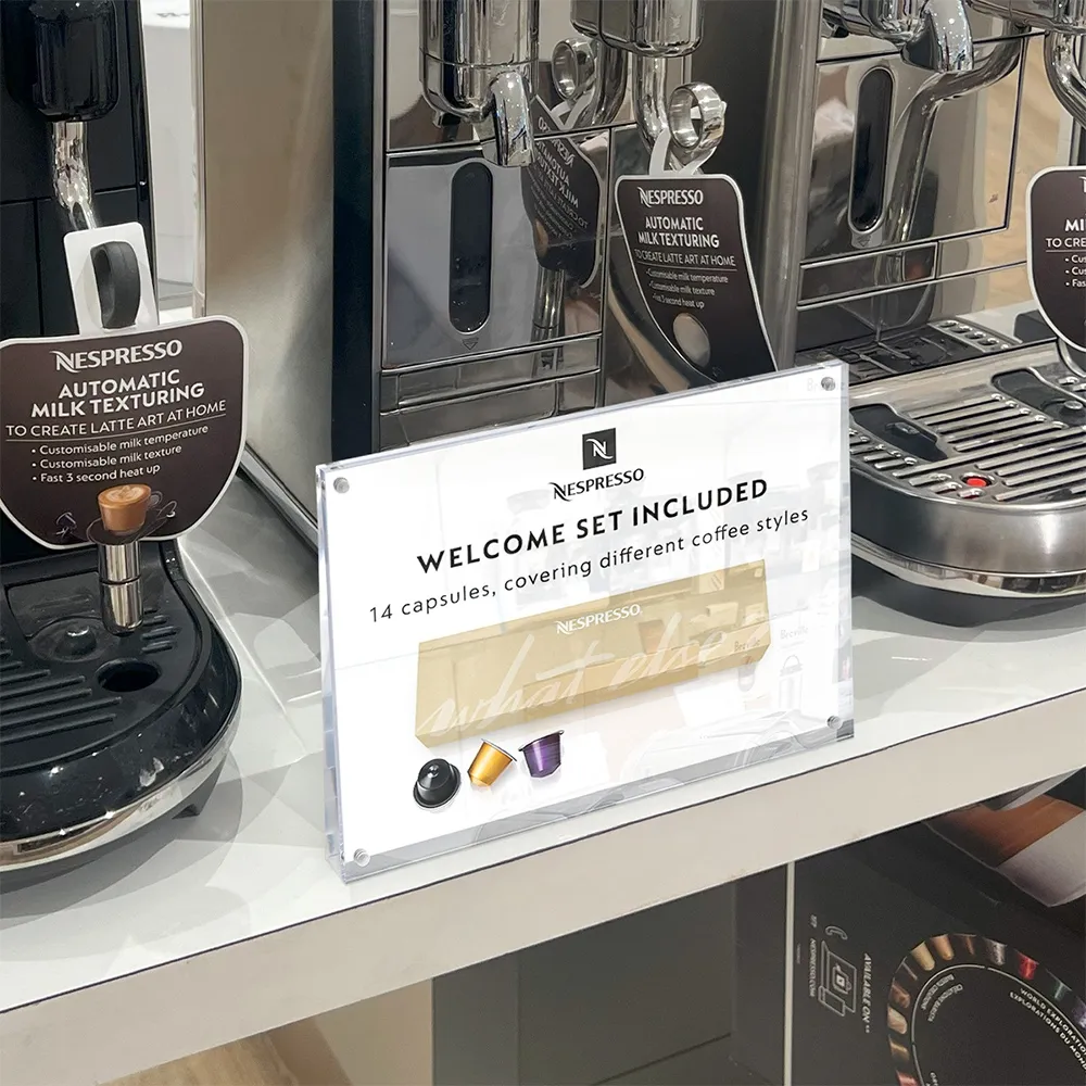 - Acrylic block sign uses thick clear perspex for a premium signage display