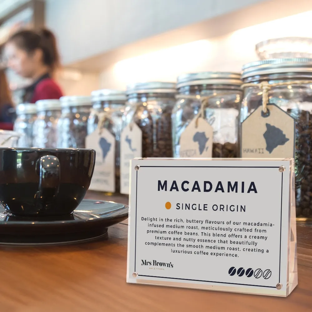 The magnetic acrylic block, like other countertop signage holders, uses built-in magnets to hold the front and back acrylic panels together, making it easy to insert or remove signage without tools. The tightness of the panel and the magnets helps to ensure that the displayed sign remains in position as well. Graphics up to 360gsm may be used, perfect for most standard signage. The angled shape makes content easier to read whether upright or laid flat, offering better visibility for customers or guests.