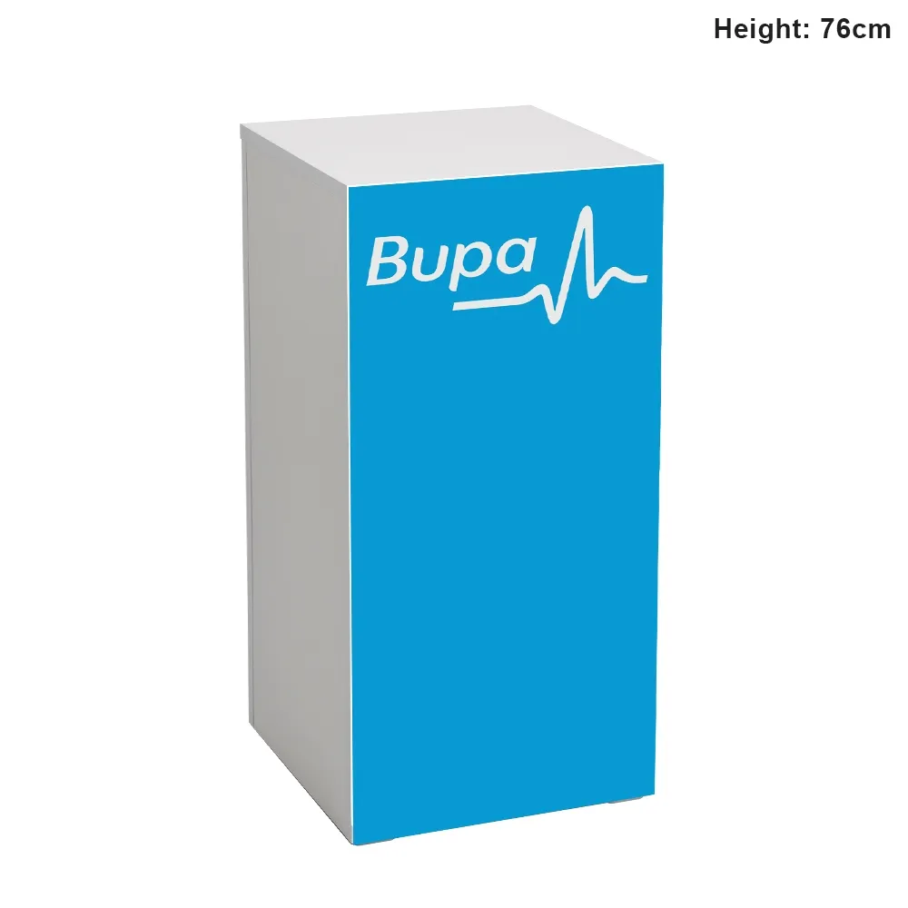 This floor standing plinth, white laminate display pedestal is used in retail stores, exhibition halls, shopping centres, and at events to help promote brands and displays for customers! There is a printed PVC poster included with your purchase that utilises custom designs to help grab the attention of visitors. This poster is 38 x 76cm, entirely taking up one side of the plinth to offer heaps of space for branding, promotions, and information for customers to view! Additional prints are also available to make updating for new sales and events quick and easy without having to purchase an entire new set. If in need of design help, our expert team is ready to assist, with three tiers to choose from to find the right one for your needs.