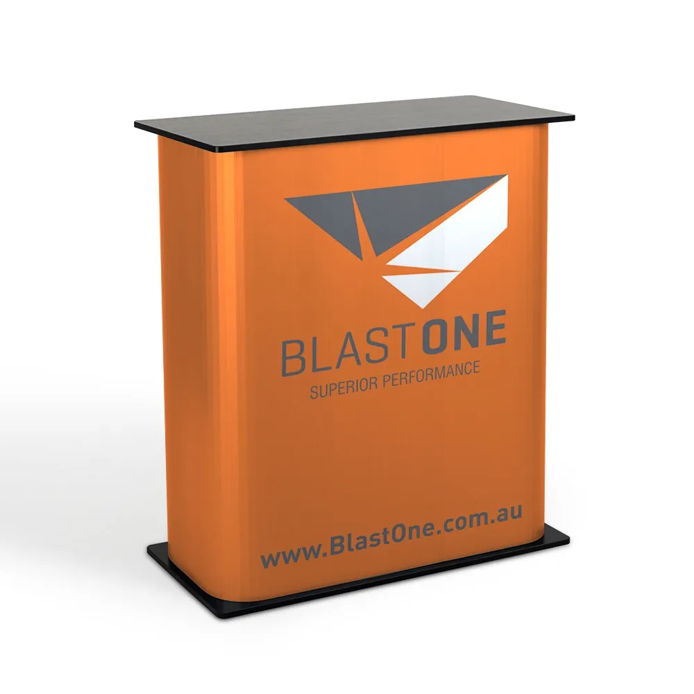 This trade show booth counter has your custom designs printed on the entire wrap, branding the display with your imagery to help better capture attention! Graphics are digitally printed directly onto the heavy duty plastic wrap to offer a true depiction of designs in full colour that will hold up well to regular use. If you need design help, our in-house team of experts is available to assist, with different tiers of help to choose from to suit your needs. The display is 895mm tall and has a 820 x 402mm countertop to easily display a wide range of items. The 20kg total weight allowance makes it easy to display most items whilst leaving space for customer interactions.