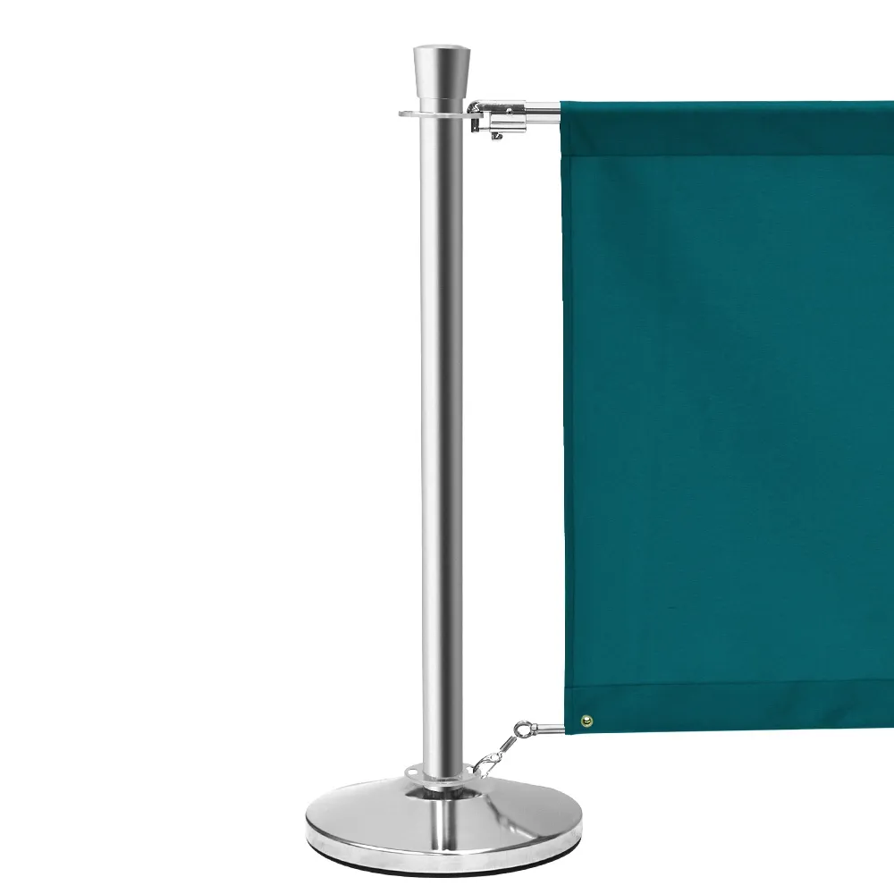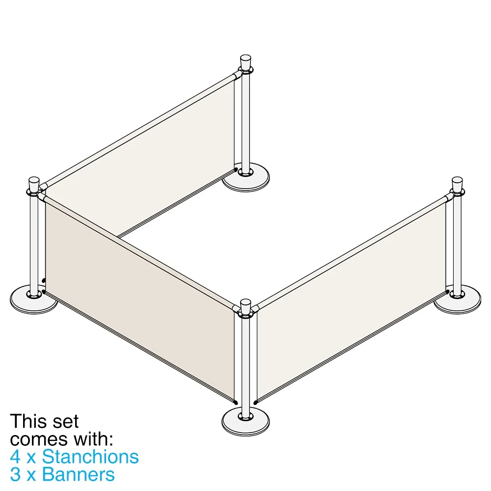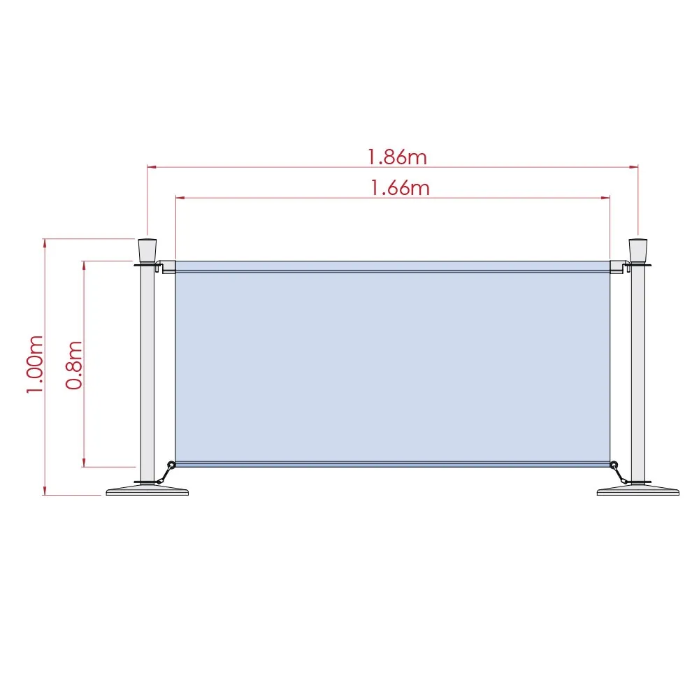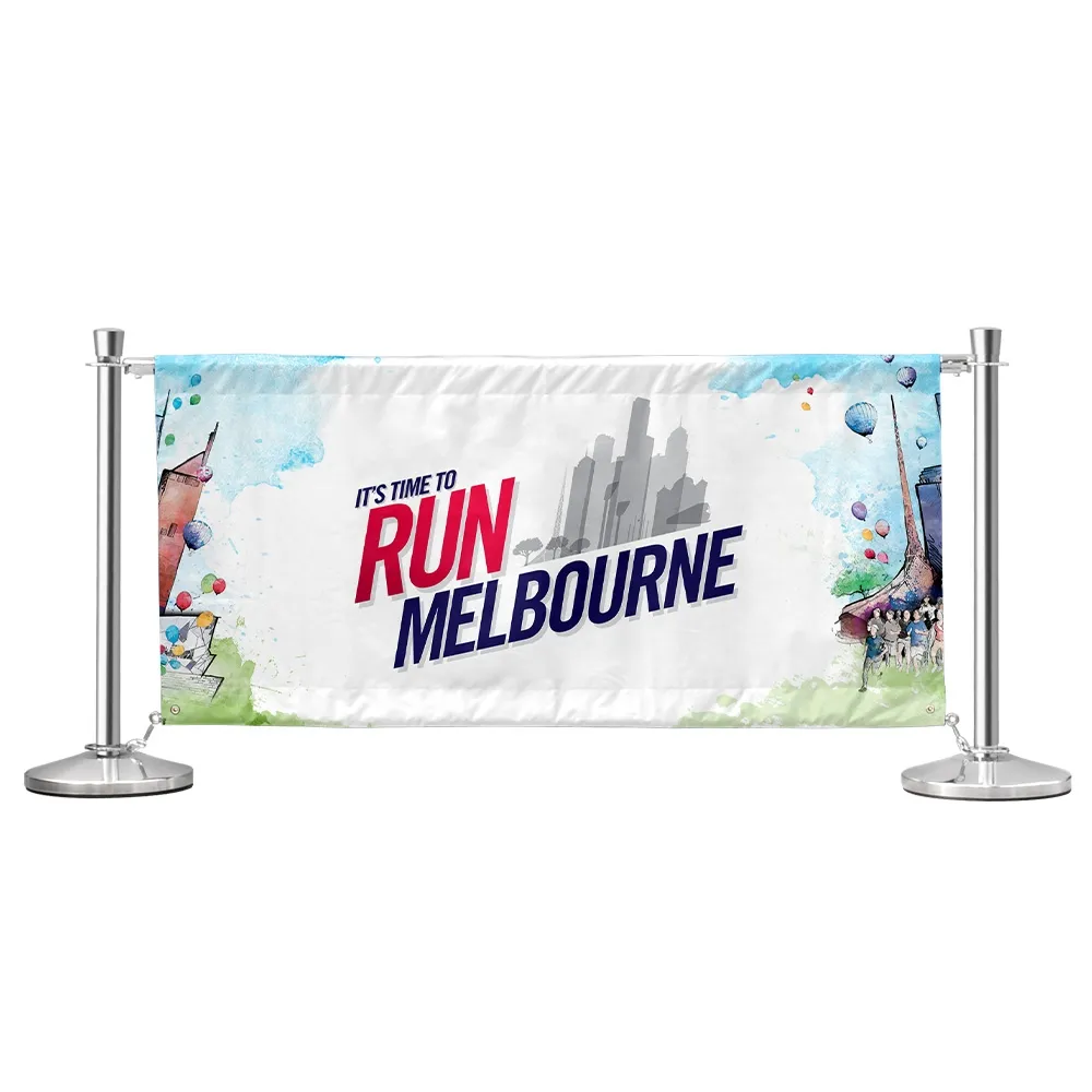 This printed cafe barrier set has (3) banners included that have your custom designs digitally printed in full colour! A dye-sublimation process is used during printing that offers true to design depictions of your graphics using rich colours and vivid imagery to really capture attention, with both sides of the fabric having the graphics to maximise visual space! Each banner is 1.6m long and made from hard-wearing polyester for indoor or outdoor use and has a channel sewn into the top that allow the stainless steel rods to be threaded through to hang the fabric between the barrier posts. There are metal grommets on the bottom of each banner that attach to the bottom of the