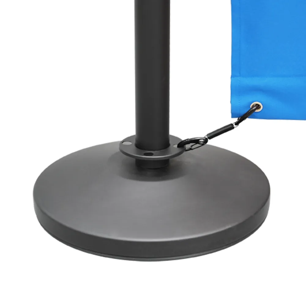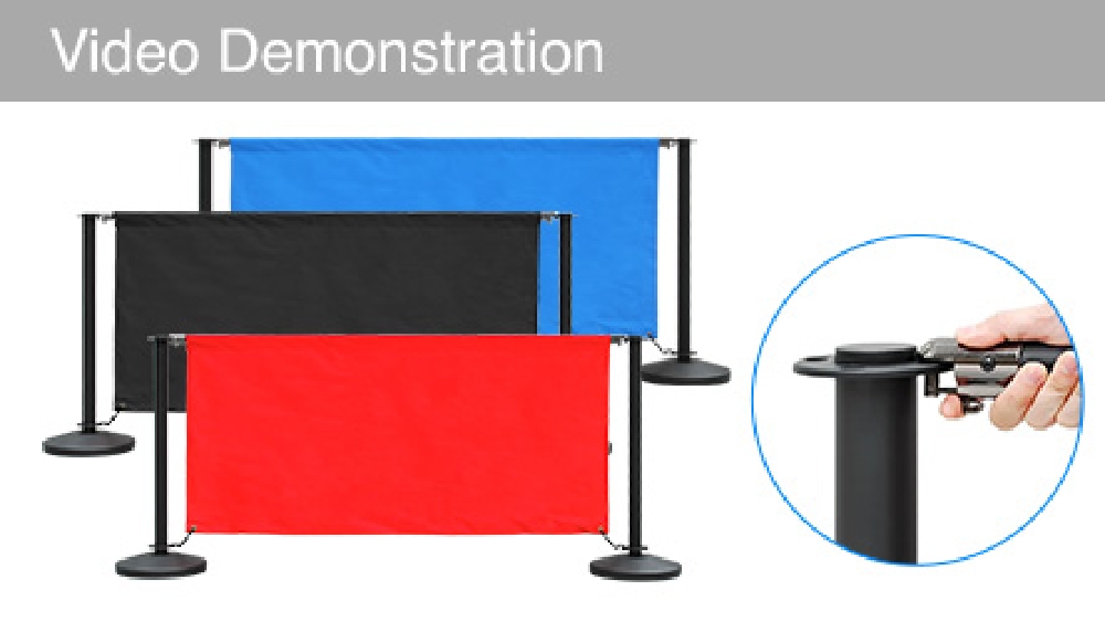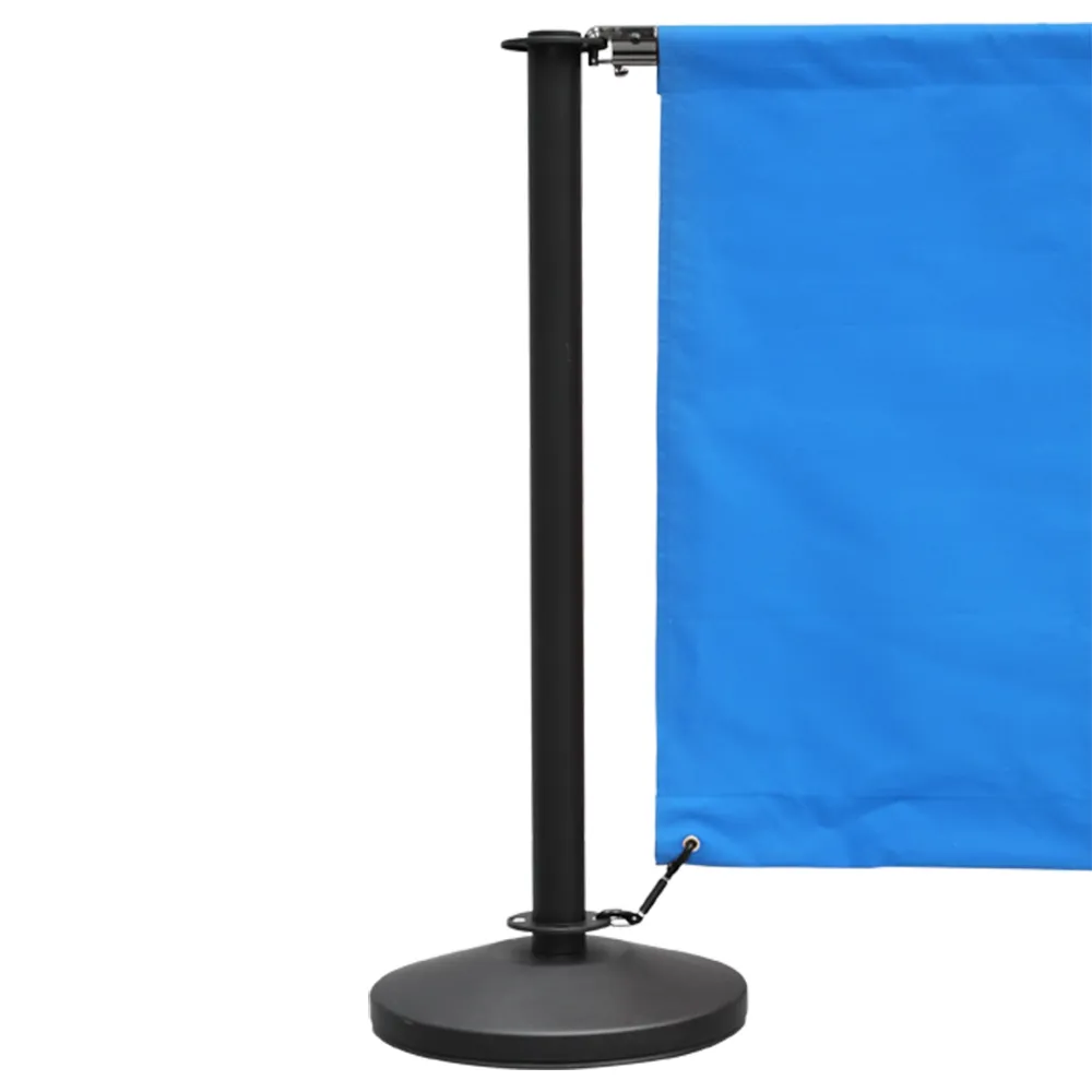 Cafe wind barriers are an attractive way to separate seating areas, cordon off areas, and manage queues in any business! This kit features (5) .9m stainless steel stanchions with a matte black finish and flat top for a sleek look that works with any décor. There are 4-way adapters atop the post and above the base to allow banners or VIP ropes to be placed in desired positions without issue. The bottom of each stanchion has a rubber ring that protects floors from damage when used inside! This style of display is popular for not only cafes, but also exhibition halls, restaurants, information centres, museums, cinemas, clubs, and more!