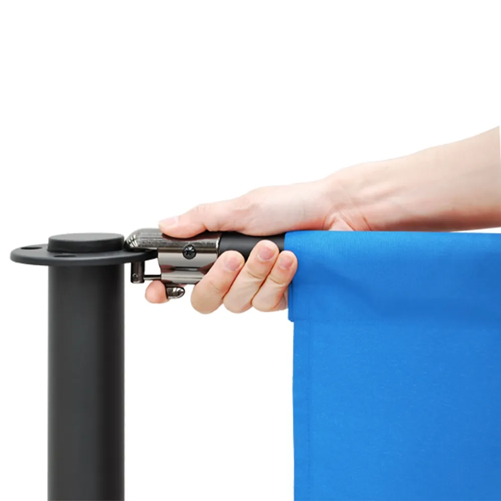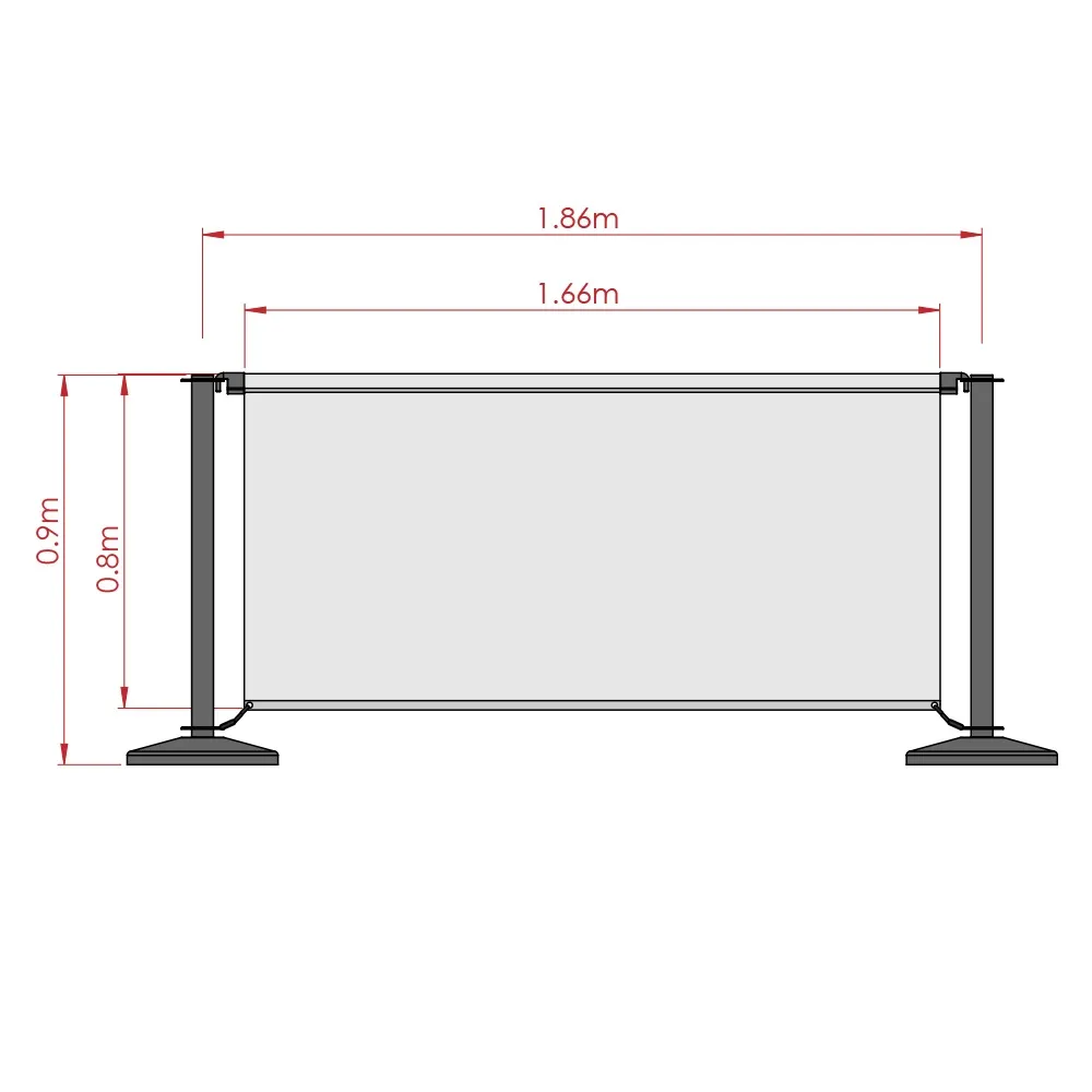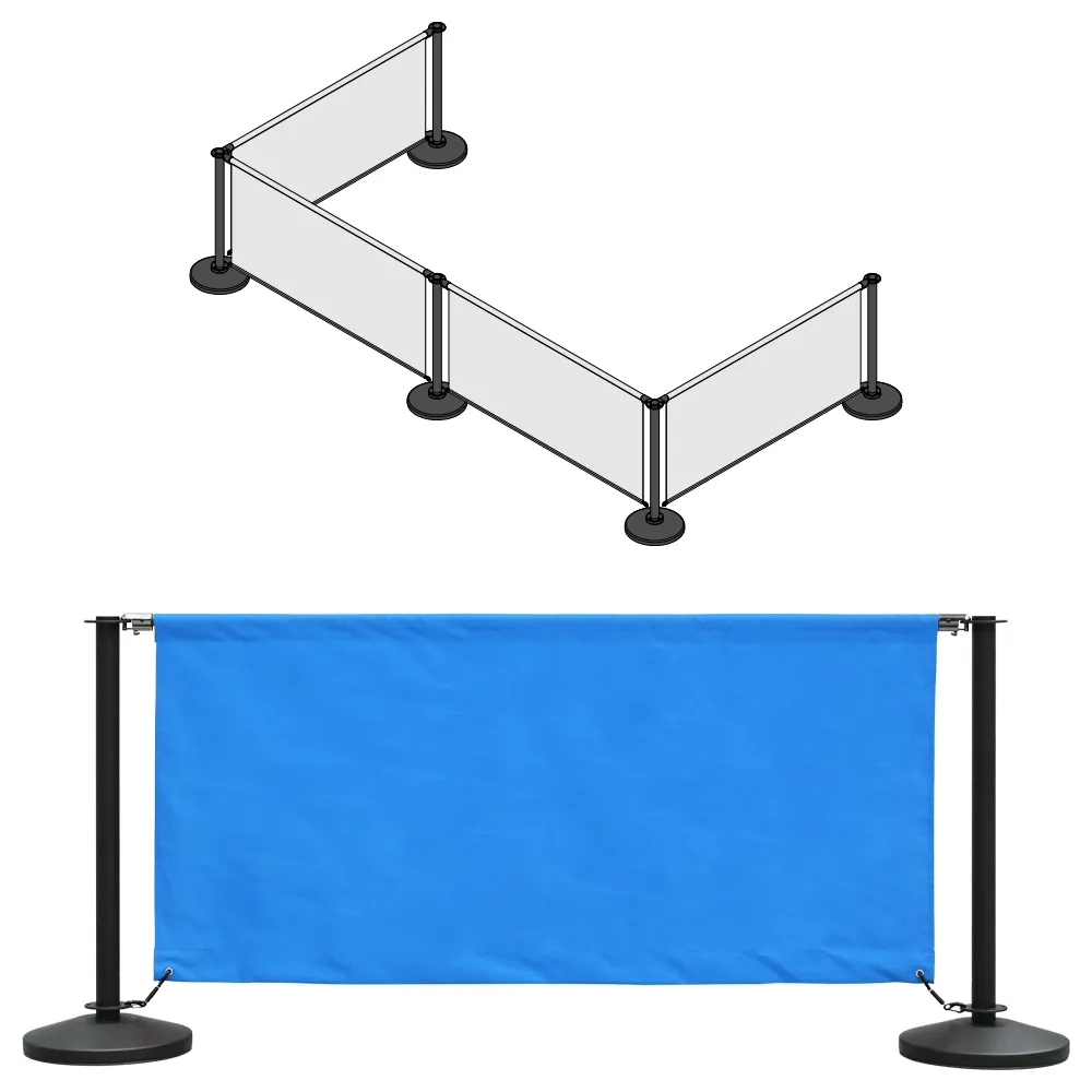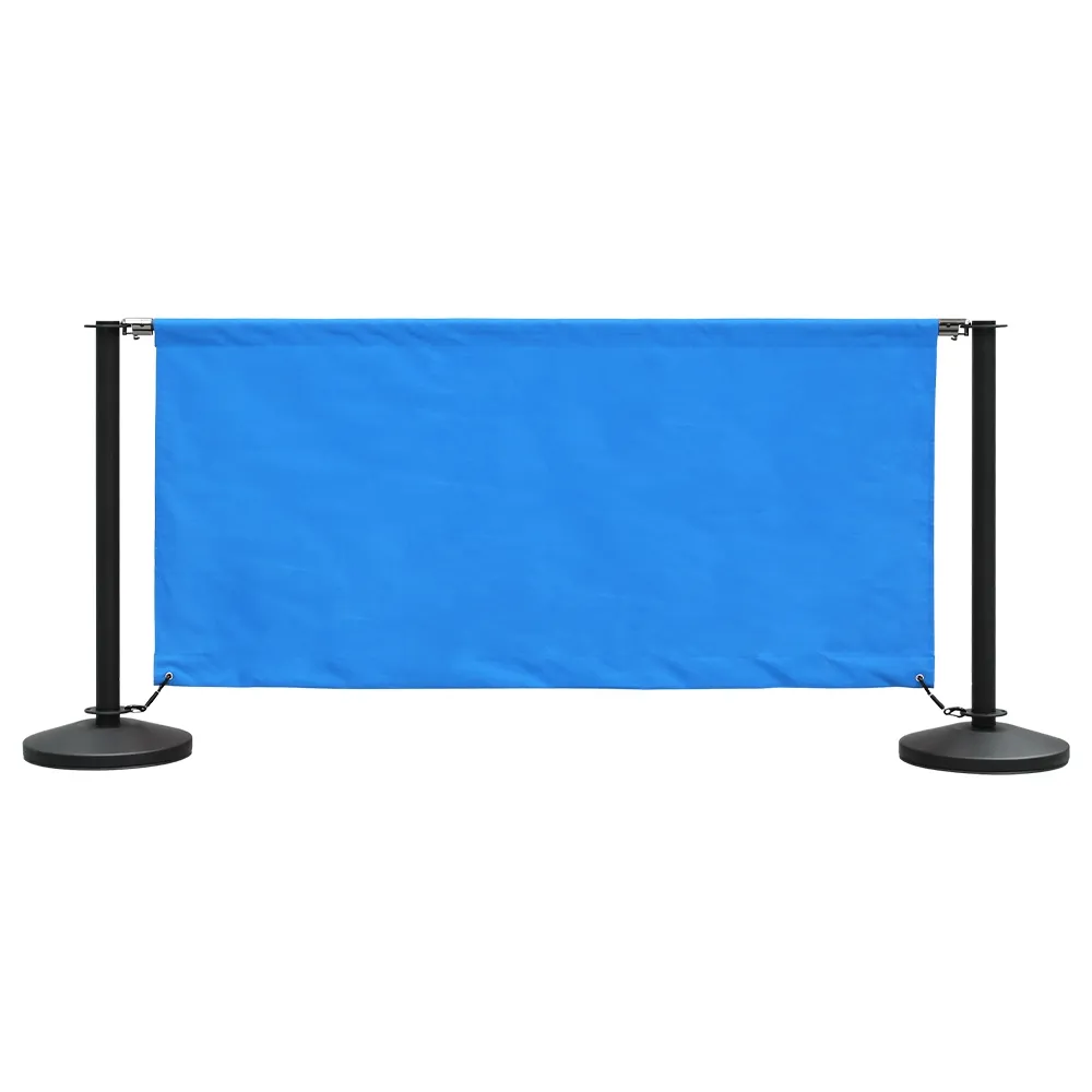 These cafe wind barriers, like restaurant pavement dividers, have (4) banners included that are made from blue polyester, providing a hard-wearing fabric with an eye-catching look. The top of each banner has a channel sewn into that allows the included stainlss steel rods to be placed to connect to the barrier posts, with quick clips on the ends securely locking in place. Grommets on the bottom of each banner attach the lower part to the stanchions via spring clips to allow movement with breeze. Many other colours and configurations available, including those with full colour print of your custom designs! Order by 3pm AEST to receive same day shipping to anywhere in Australia with this and most other in stock products, only from Slimline Warehouse!