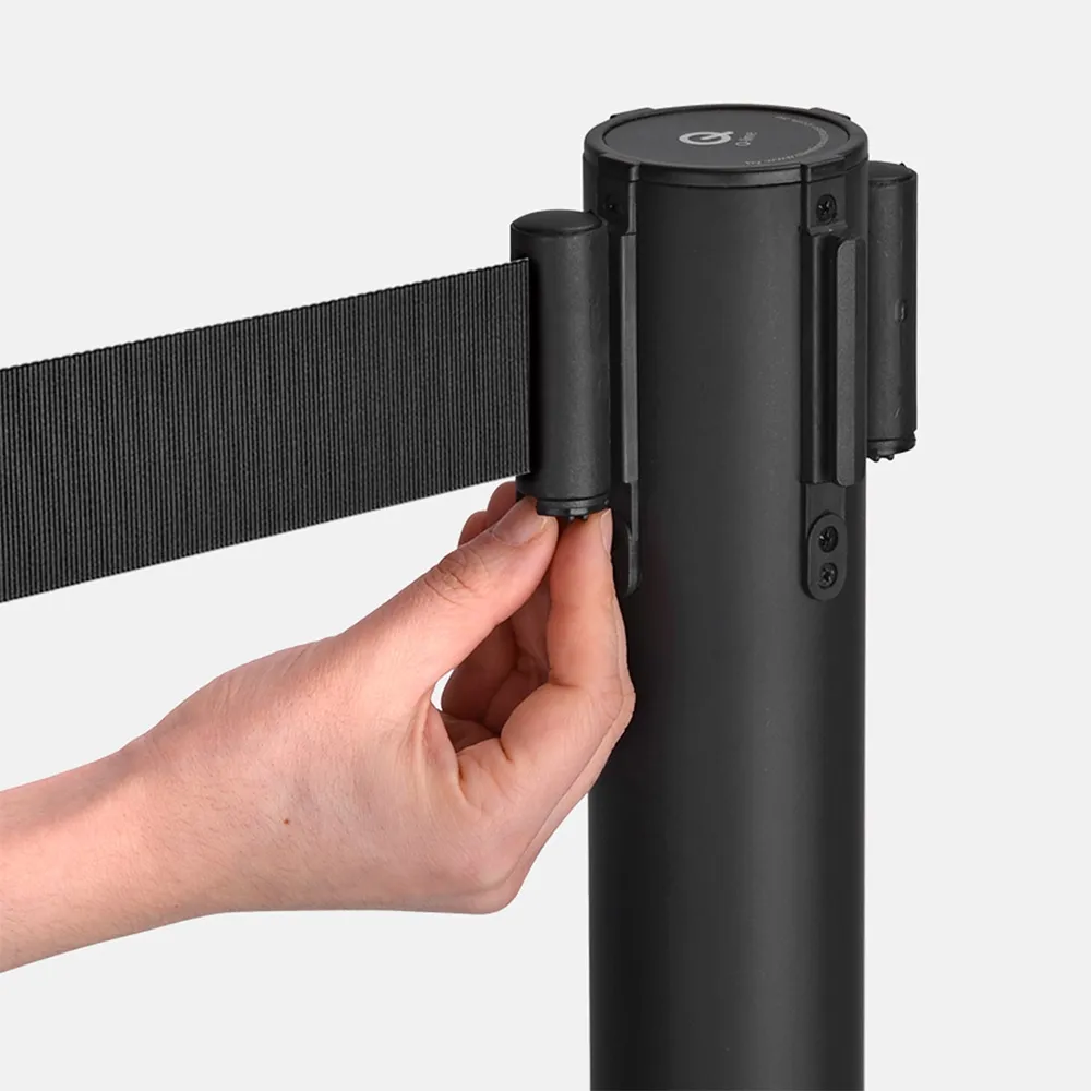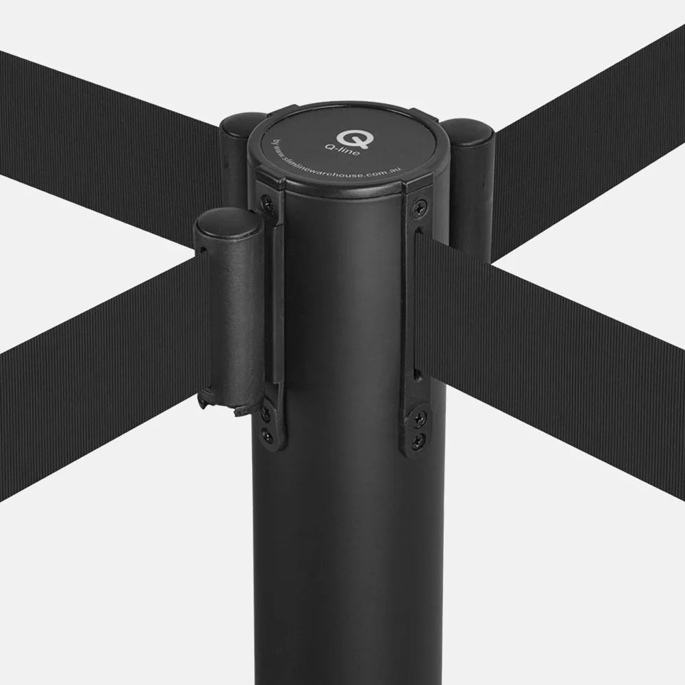 - Retractable barrier posts can also be fitted with sign holders that fit onto the posts. Q-Line barrier posts are a modular system and can be configured with many Q-Line retractable posts.