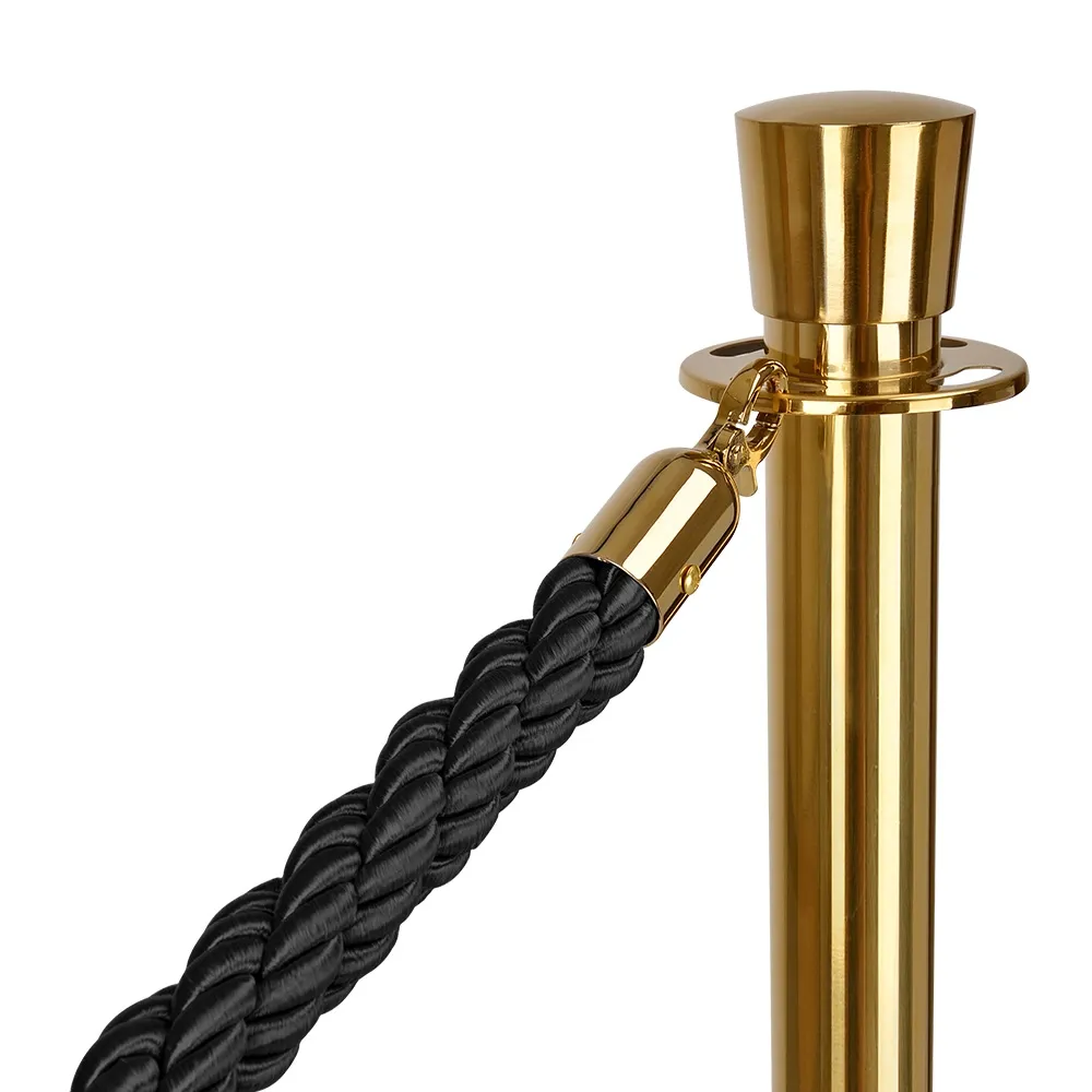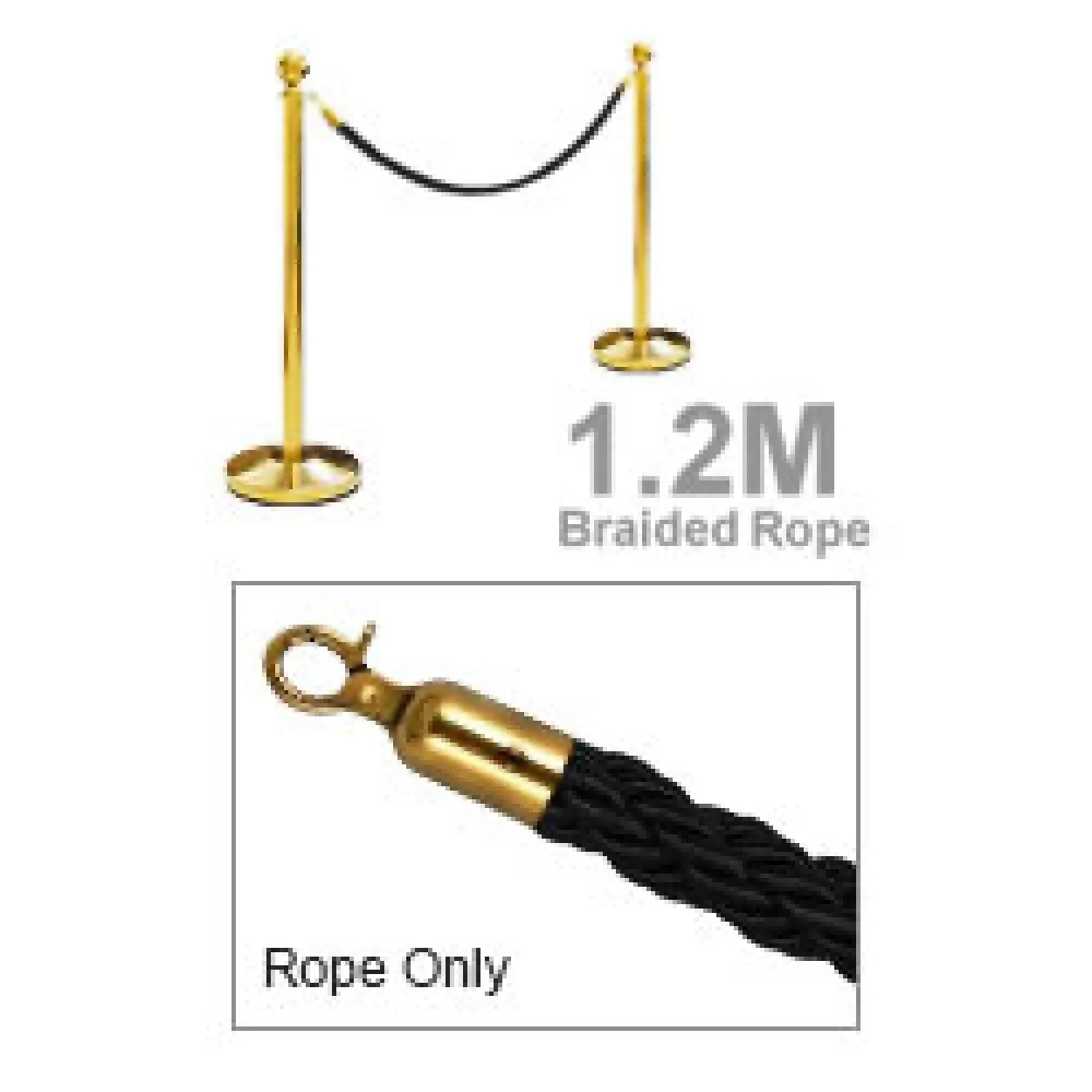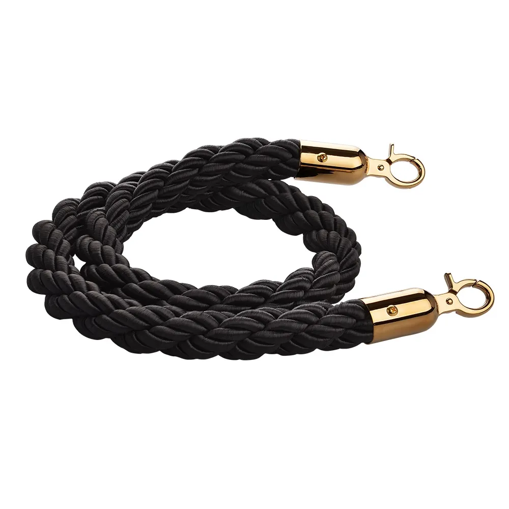 The rope post is used by a number of businesses, including car dealerships, restaurants, cinemas, nightclubs, and bars. The bollard ropes use a black colour to fit in with most locations. The rope post, like rope fencing, features a braided design that sets it apart from standard ropes. These ropes attach to barriers using hooks on each of the gold ends.