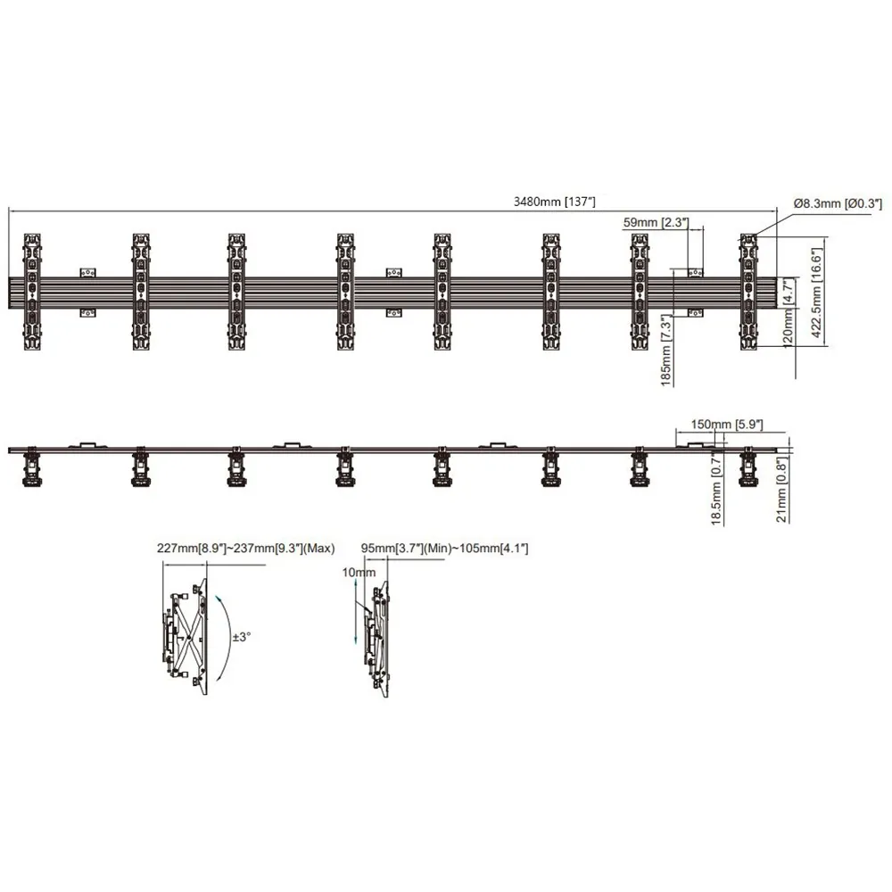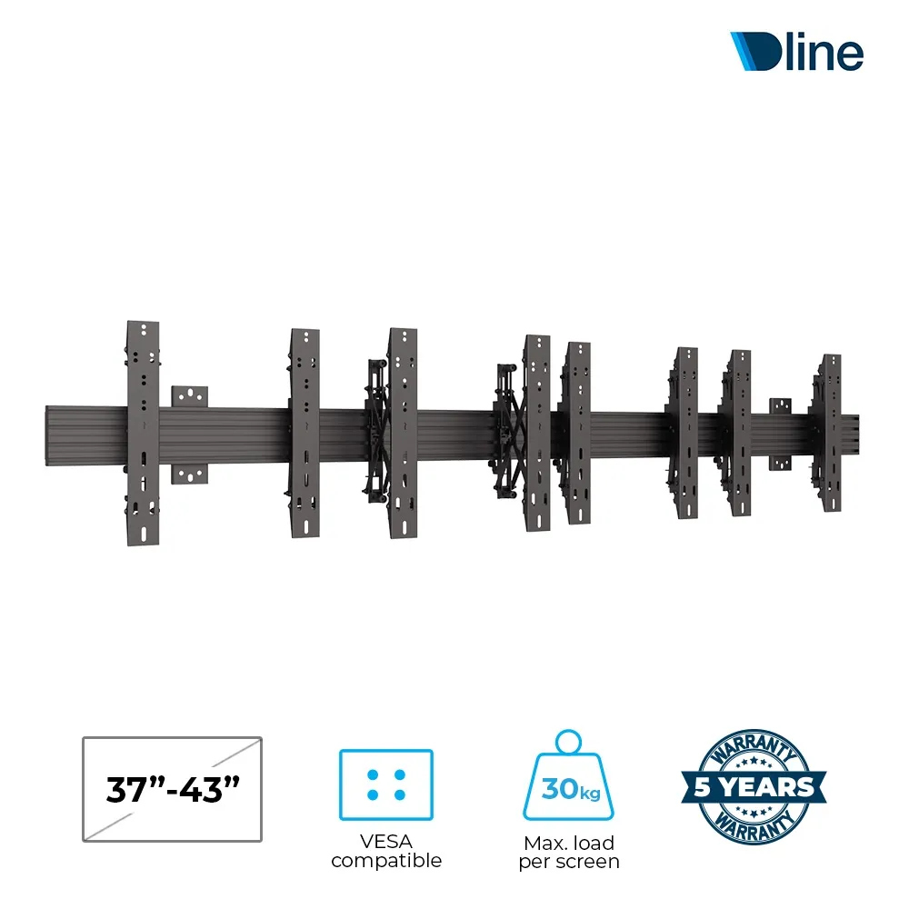 - Commercial aluminium rail mount is 3480mm long to easily accommodate up to (4) 43” flat panel screens at once