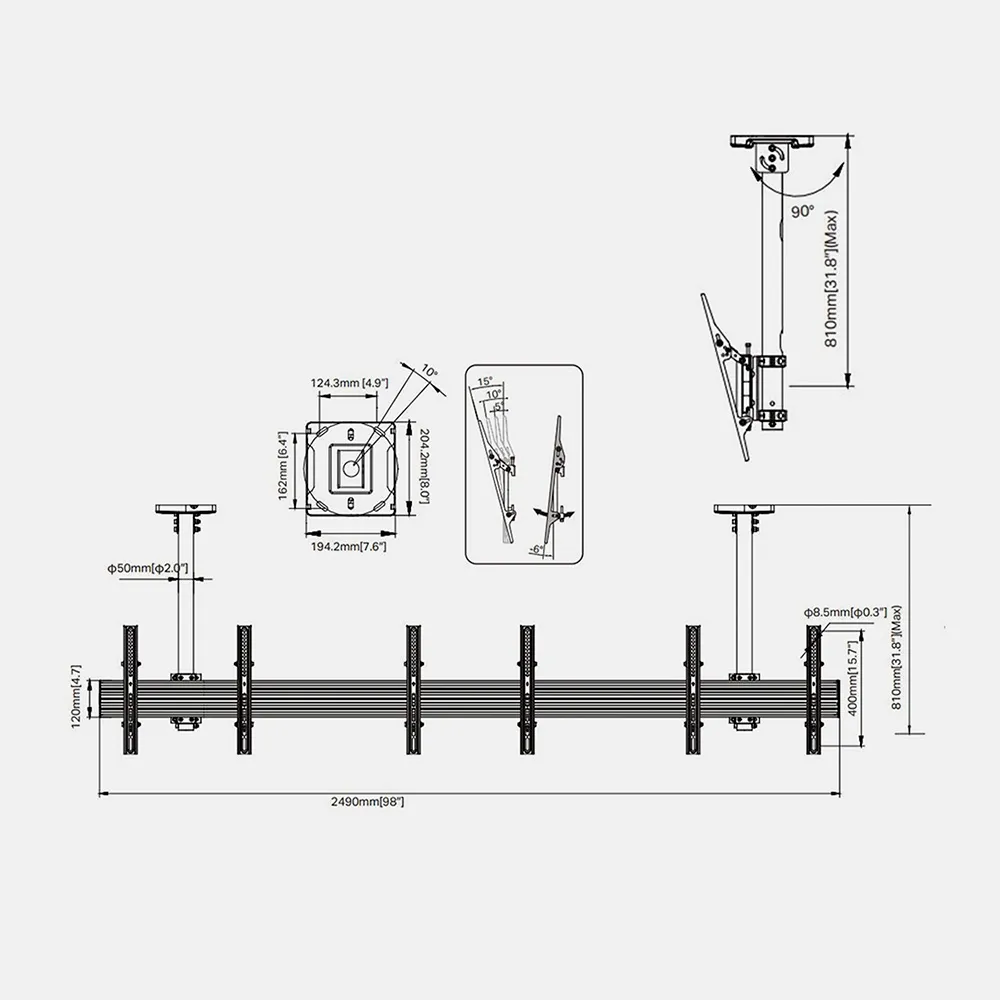 | Overall Size (Bracket) | 2490 x 810 x 180 mm |
