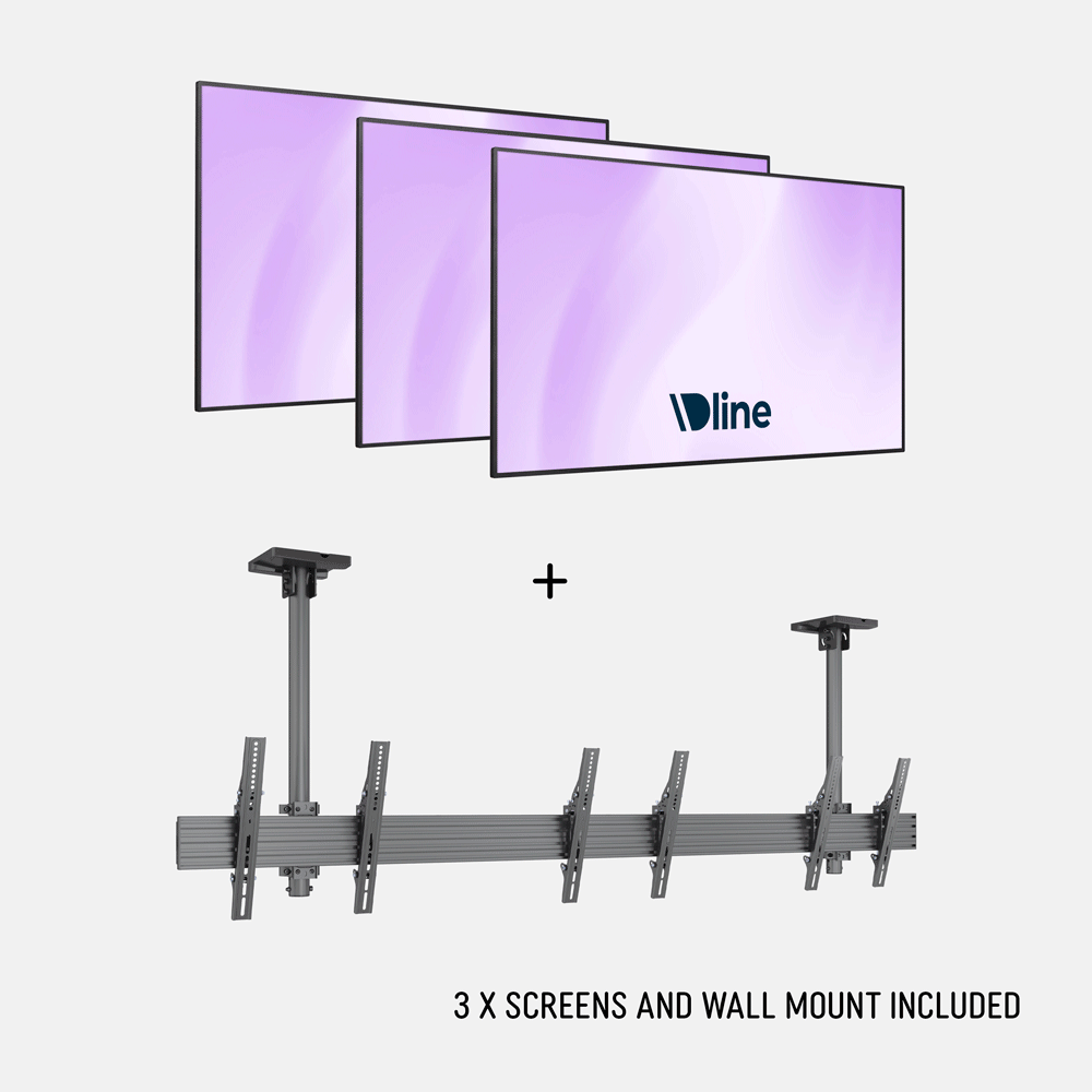 This ceiling menu board transforms how a range of businesses display their dynamic messaging and promotional content to customers. This complete package includes three 43-inch screens with ceiling brackets, delivering exceptional value compared to purchasing components separately. The adjustable tilt feature allows precise viewing angles from -6° to 15°, ensuring optimal visibility for customers whether they're standing at counters or seated at tables. Fast food operators benefit from dynamic menu updates that boost sales and reduce printing costs.