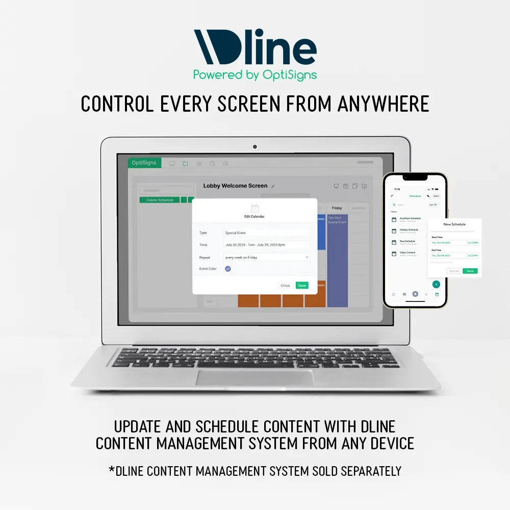 - Commercial grade screens rated for use up to 18 hours a day for full business hours use