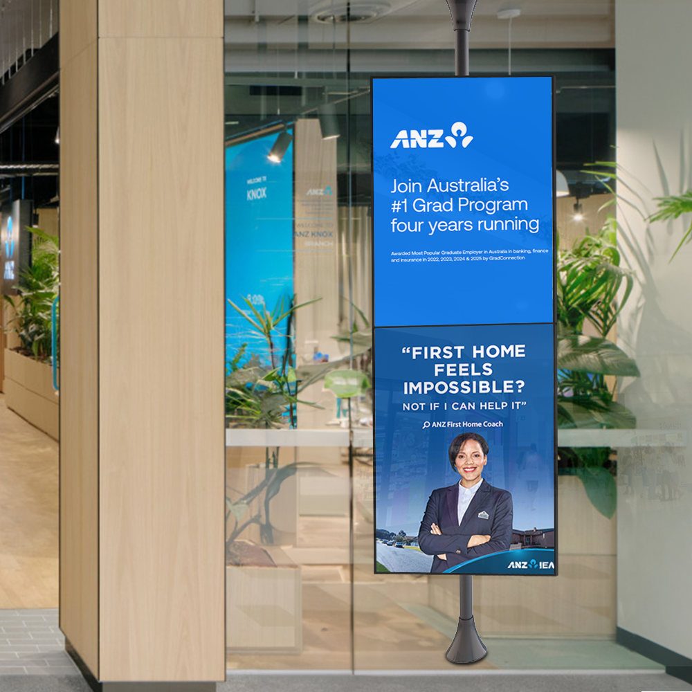 TV brackets for ceiling mount offer a minimalist and high-impact solution for dual-screen displays in busy indoor spaces. Display 32” and 65” screens that each weigh up to 30kg to easily support a wide range of makes and models. The modular pole mount system extends floor-to-ceiling up to 3 metres, delivering elevated, space-efficient signage in nearly any space. Internal cable management keeps power cables and leads hidden from sight to maintain a clean look. The black powder-coated finish offers a sleek display that ensures all attention stays on your content.