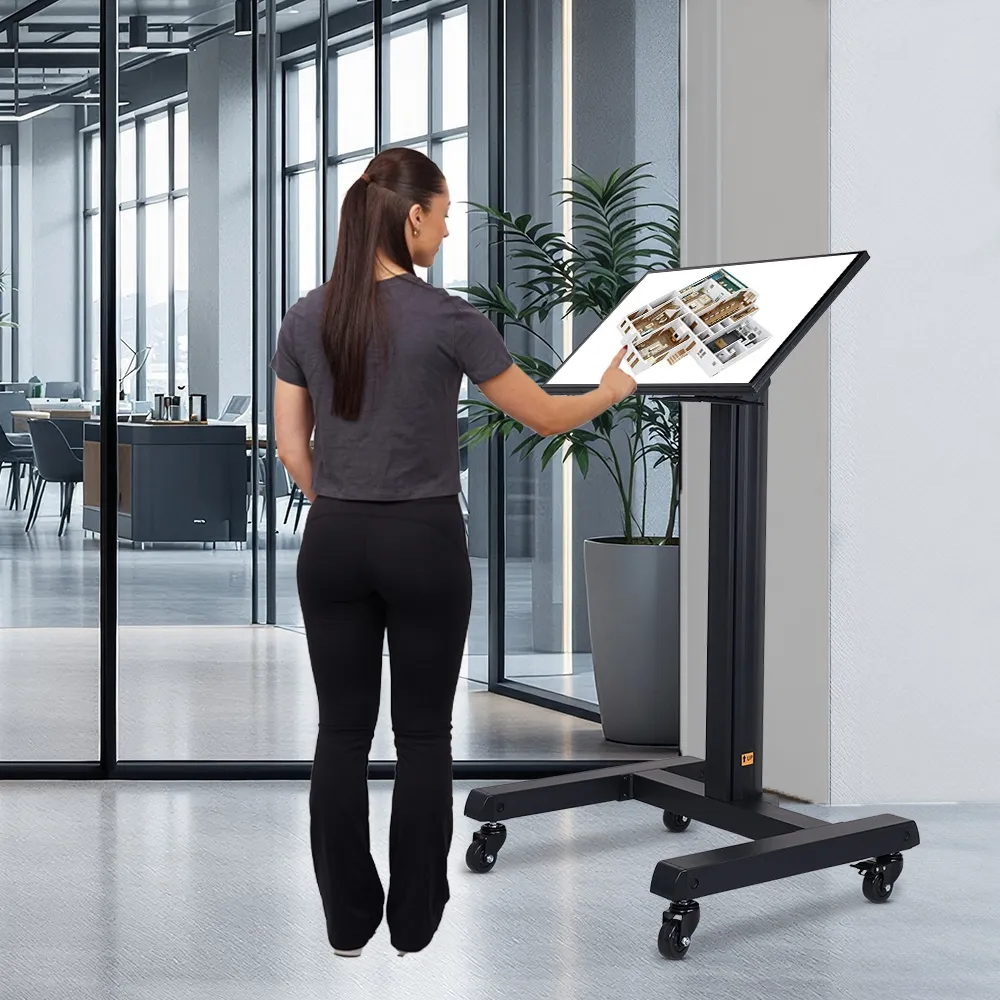 This tilted TV stand makes presenting digital content fast and flexible. Designed to support screen sizes from 32" to 75", this versatile display flips 90° into table mode in seconds, creating a slanted interface ideal for touch interactions or collaborative viewing. Whether you're showcasing a touchscreen wayfinder in a retail store or running hands-on digital workshops in education, this display makes engagement simple. The 68kg maximum load capacity provides confidence for heavier screens, while the sturdy aluminium frame ensures stability without adding unnecessary weight. A built-in anti-theft system allows you to add a padlock for peace of mind in public-facing areas.
