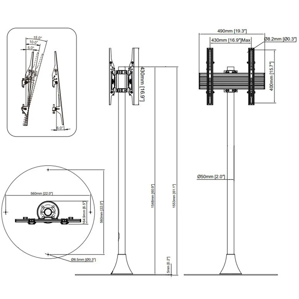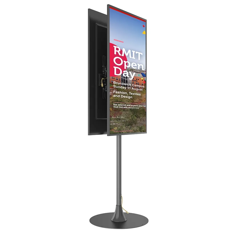 The dual Vertical TV stand, a freestanding commercial mount, is well-suited to lobbies, shopping centres, and foyer areas where directional or promotional signage needs clear visibility. The 1.5m tall freestanding TV mount has a built-in cable management system that keeps wires organized and hidden. The large base offers great stability whilst reduceing tripping hazards. the floor TV pedestal has a modular design to make installation quick and adjustments easy, allowing you to switch layouts as needed without fuss.