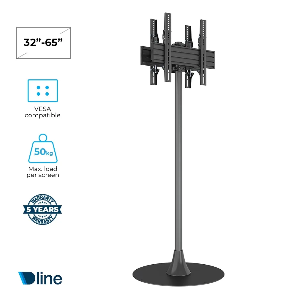 - Dual vertical TV stand supports two 32"–65" commercial screens with max load of 50kg