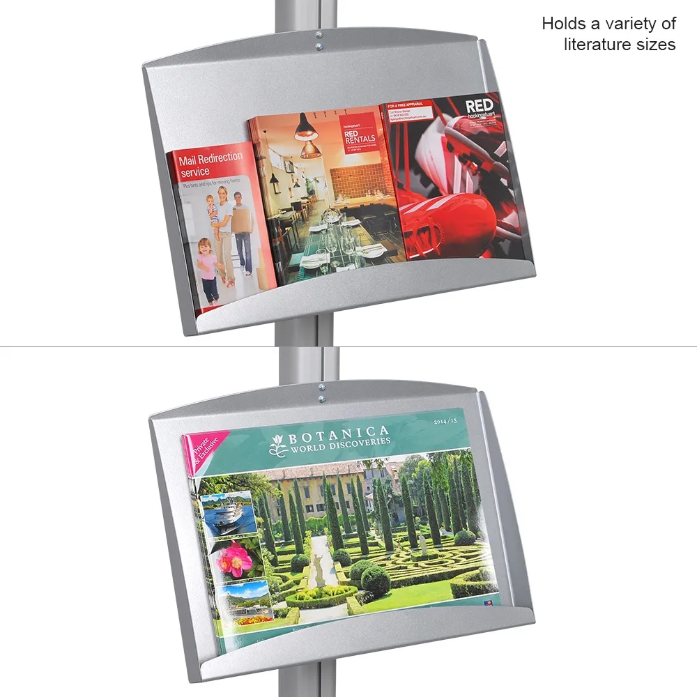 - Angled brochure pocket holds 2x A4 (210 x 297mm) or 1xA3 (297 x 420mm) pamphlets