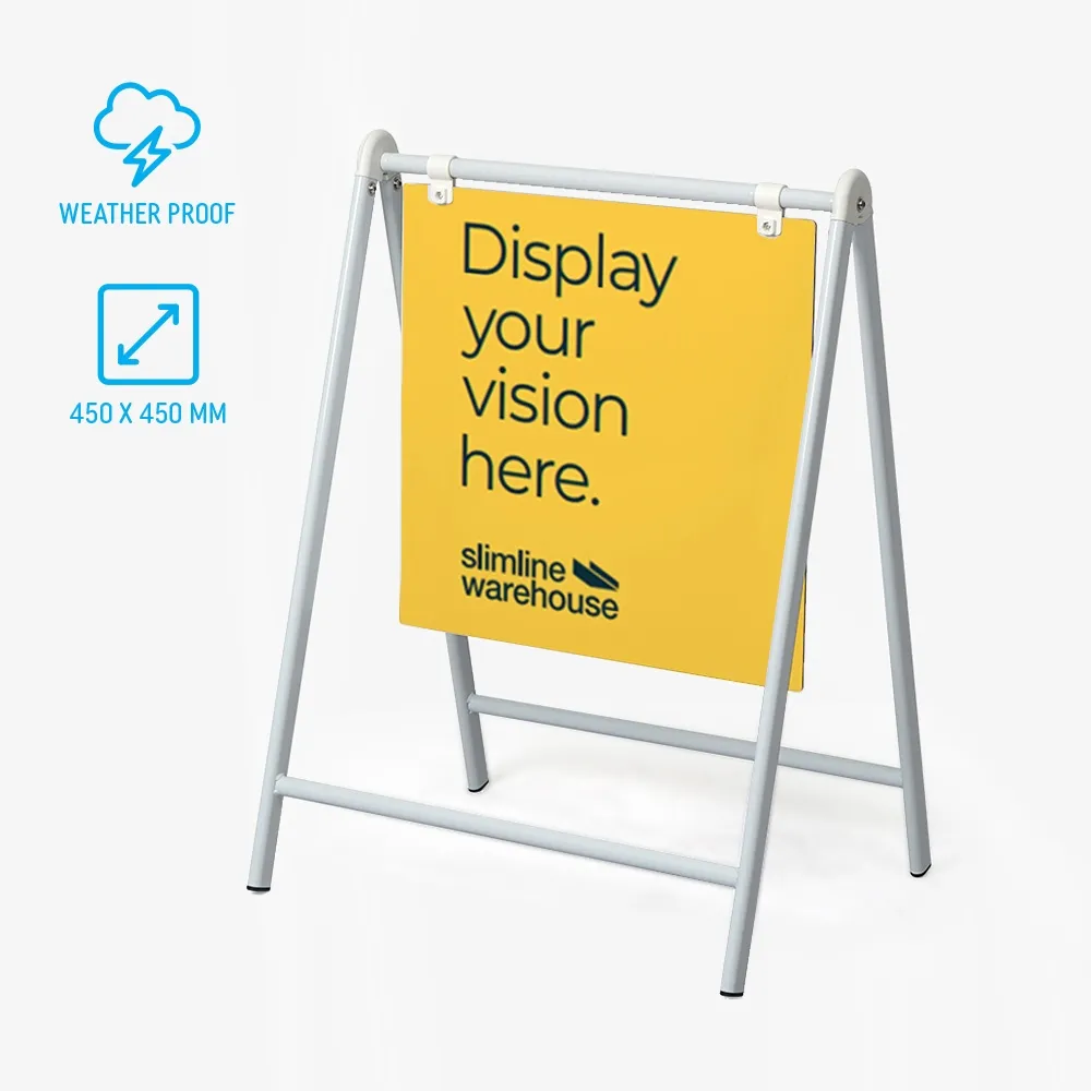 Made from aluminium, this unit is only 3.5 to be lightweight and easily carried into desired position. The durable frame and white finish provide long-lasting signage that looks great anywhere. Slimline Warehouse offers same day shipping to anywhere Australia-wide with this and most other in stock products when purchased by 3pm AEST. Buy online today for quick dispatch to Melbourne, Sydney, Adelaide, Perth, Darwin, Surfers Paradise, Gold Coast, Brisbane, Canberra, and anywhere else nationwide!