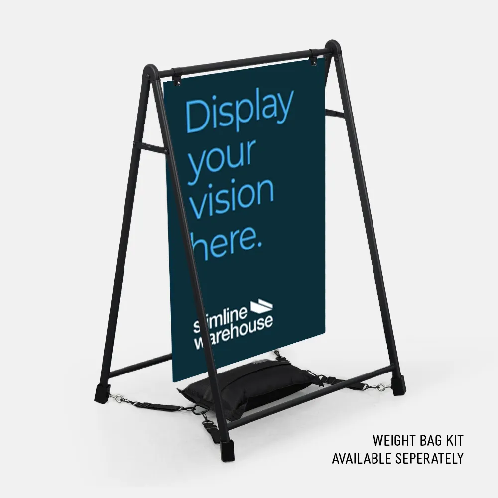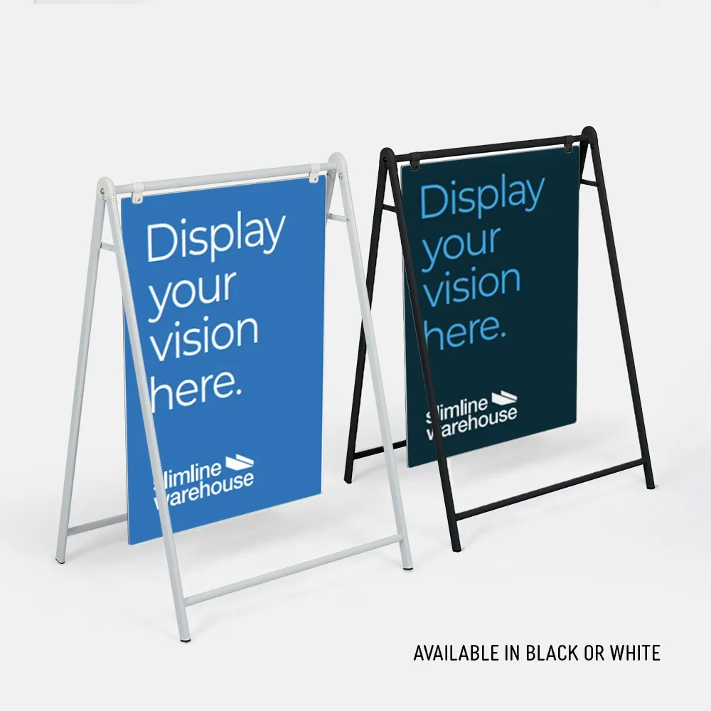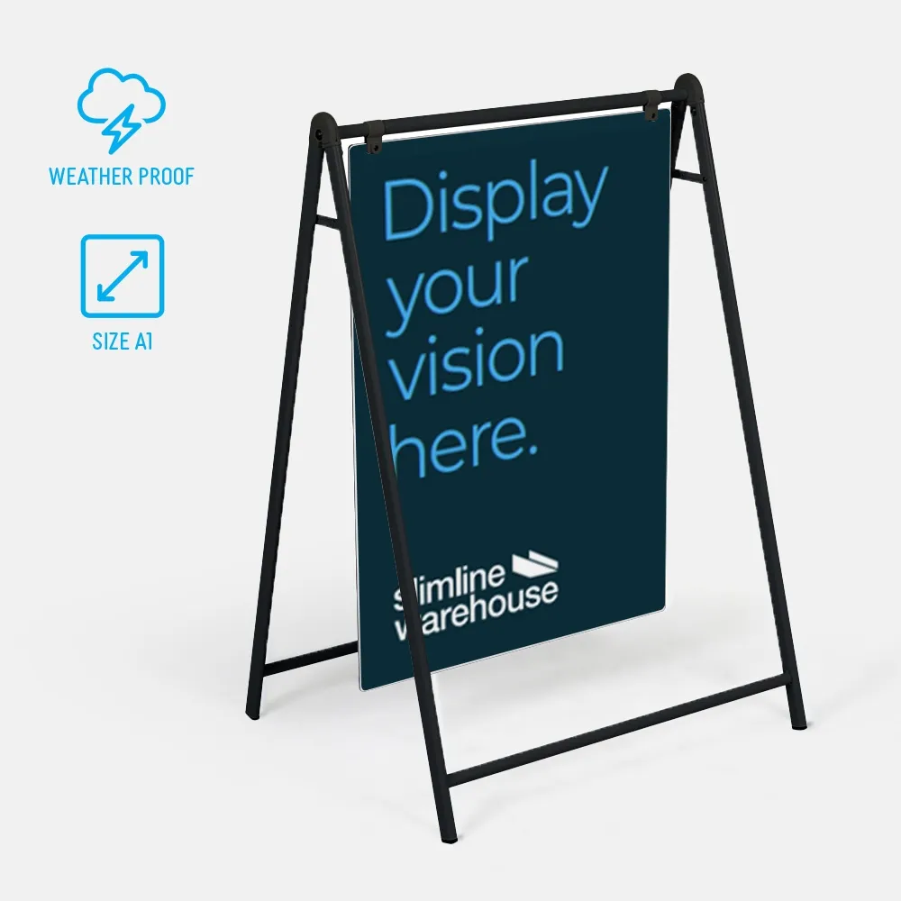 This outdoor signage is made from matte finish metal to be both lightweight and affordable. The black finish offers a sleek look that helps focus attention on the displayed signage while sitting in with different discourse styles. Assembly is quick and easy using only simple tools. Slimline Warehouse offers fast shipping to anywhere in Australia, buy online today for quick dispatch nationwide.