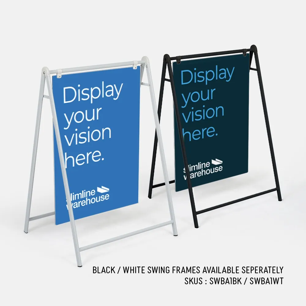 The swinging A1 sign features cut outs at the top in order to be easily installed onto our A1 (841 x 594mm) sized swinging signs in seconds. The large sign panel offers heaps of rooms for your creative team to utilise eye-catching graphics and easy to read fonts to reach out to customers. Sign shops can purchase this unit as well since the packaging is unbranded and perfect for upselling your print services to be used with the display. Slimline Warehouse offers same day shipping to anywhere in Australia with this and most other in stock products if purchased by 3pm AEST, buy online today!
