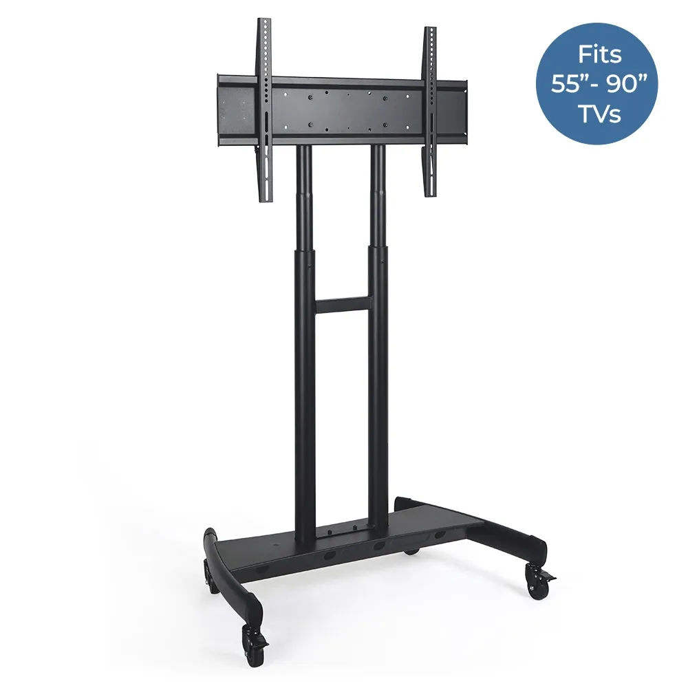 - Mobile TV trolley works with 55" to 90" flat screens up to 90.9kg