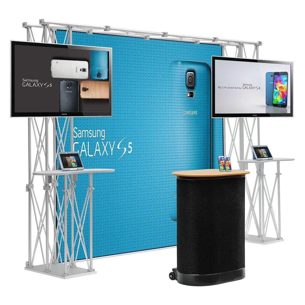 The fabric attaches to the truss frame securely with velcro, which can easily be attached and detached when breaking down after the show is finished. Order today for faster despatch to your business to be used for your next event!